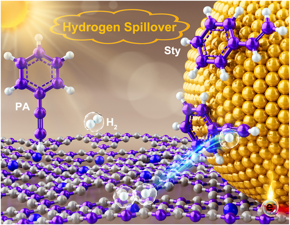 Facile reactant dissociation and weakly bound intermediates are essential for achieving both efficient and selective catalysis. However, these two factors are inherently interconnected, making their simultaneous optimization particularly challenging. Herein, we propose a decoupling strategy to circumvent this limitation and demonstrate it using a novel antenna-reactor catalyst constructed with single atom and plasmonic nanoparticles. By combining in situ surface-enhanced Raman spectroscopy with density functional theory calculations, we reveal that nonequilibrium carriers significantly enhance hydrogen dissociation at Pd single-atom sites. Subsequently, these active hydrogen atoms spillover to adjacent Au surfaces, facilitating more favorable alkyne hydrogenation and alkene desorption processes. Consequently, the Pd SAC-Au photocatalyst exhibits remarkable catalytic performance, achieving a turnover frequency value of 3964 molC=C molPd-1 h-1 and demonstrating 99.99% conversion of phenylacetylene with 90% selectivity toward styrene under mild reaction conditions (298 K, 101.3 kPa). This approach offers a novel pathway to overcome traditional catalytic trade-off, highlighting the potential for designing high-performance single-atom catalysts for chemical reactions.